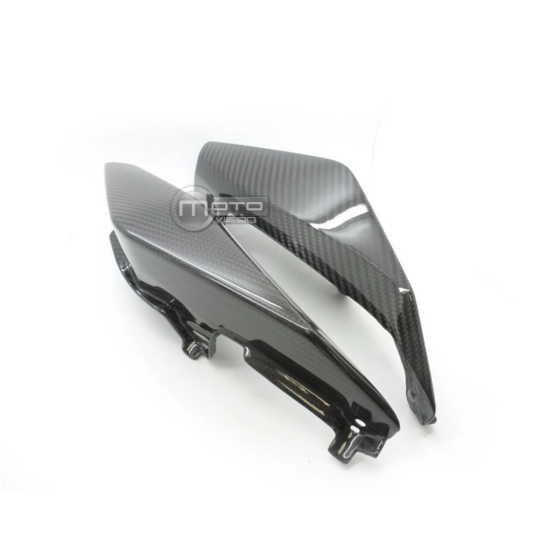 Flancs de selle Carbone vernis Yamaha MT09 2013-2016, livré sans visserie ou autres fixations. Les perçages sont déjà effectués sur les carénages moto en carbone.