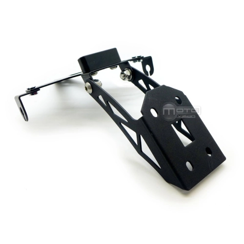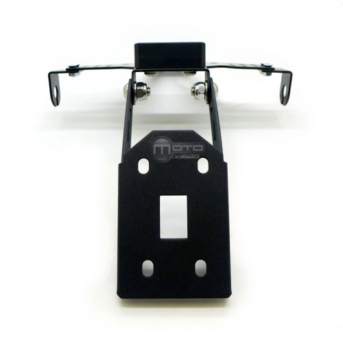 Support de plaque inclinable en aluminium avec adaptateur spécifique à la moto.