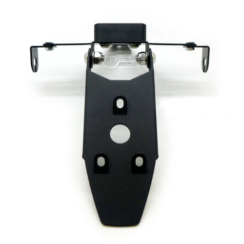 Support de plaque inclinable en aluminium avec adaptateur spécifique à la moto.