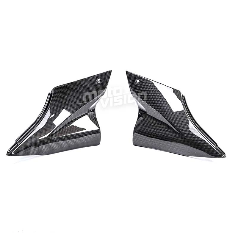 Paire de caches latéraux Carbone Kawasaki ZX10R 2006 - 2007, livré sans visserie ou autres fixations. Les perçages sont déjà effectués sur les carénages moto en carbone.