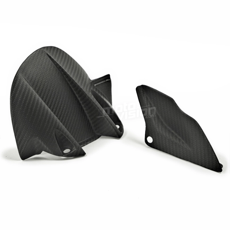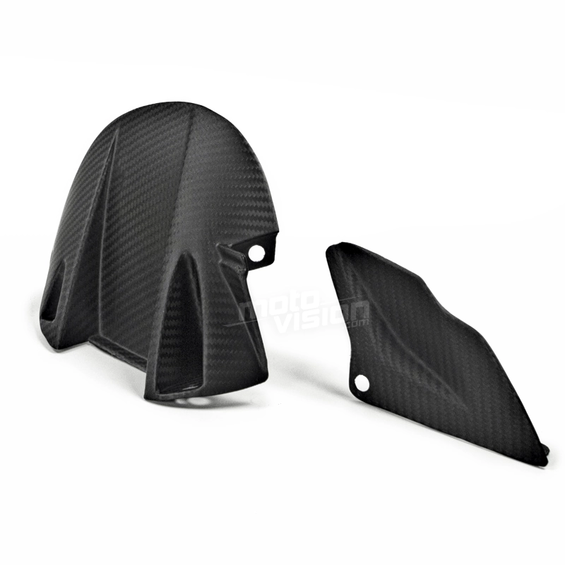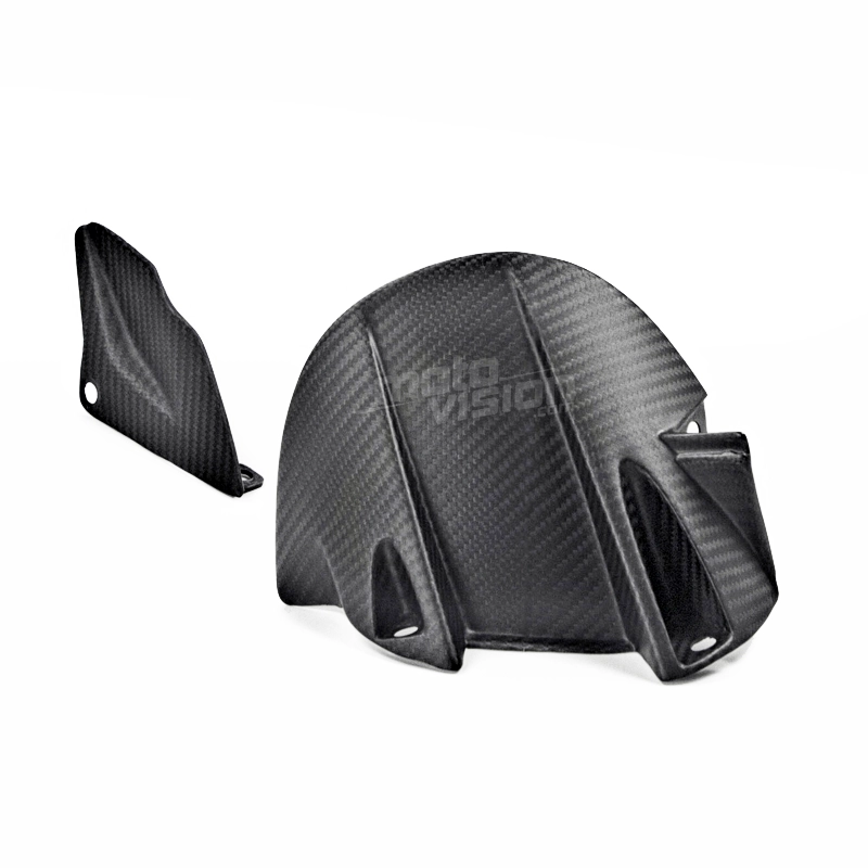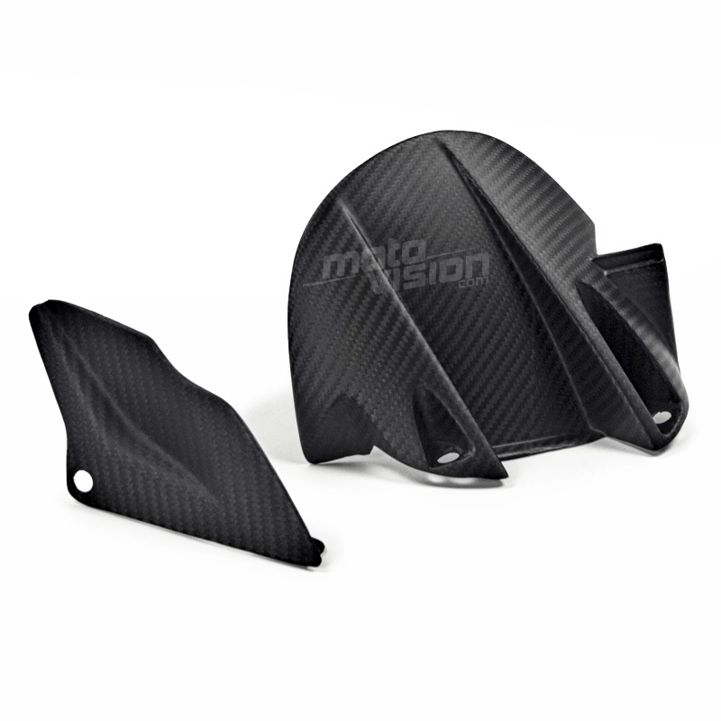 Lèche roue + Cache chaine bas Carbone Aprilia Dorsoduro 750/900/1200 à monter directement sur les points de fixation d'origine de votre moto en remplacement du carénage d'origine. Les pièces en carbone sont livrées sans visserie.