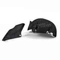 Lèche roue + Cache chaine bas Carbone Aprilia Dorsoduro 750/900/1200, livré sans visserie ou autres fixations. Les perçages sont déjà effectués sur les carénages moto en carbone.