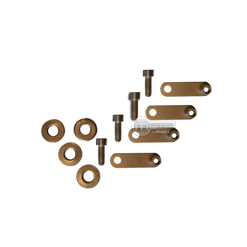 Le kit se compose de quatre vis, quatre rondelles plastiques et les 4 pattes inox ajustées à la longueur pour toute les Ducati Monster.