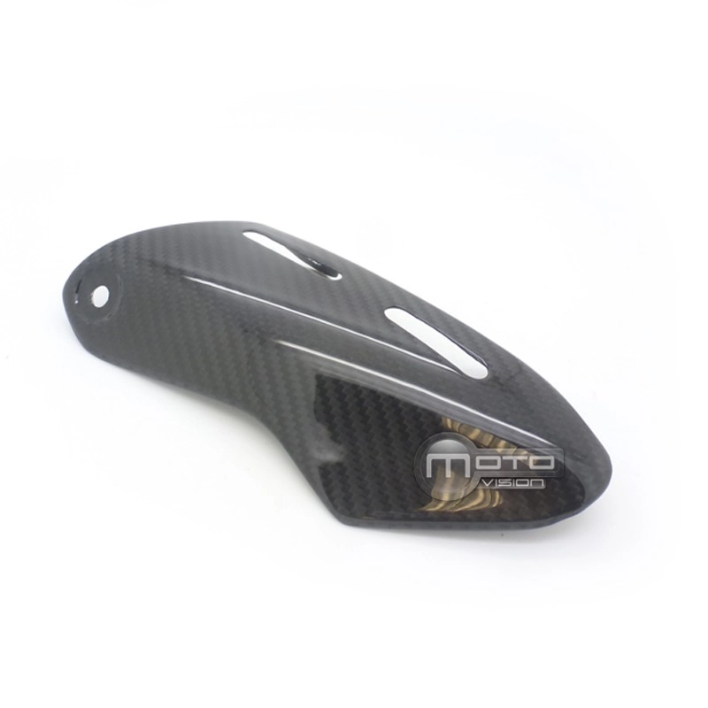 Cache sur sortie d'échappement Carbone Ducati Monster 1200 2014, livré sans visserie ou autres fixations. Les perçages sont déjà effectués sur les carénages moto en carbone.