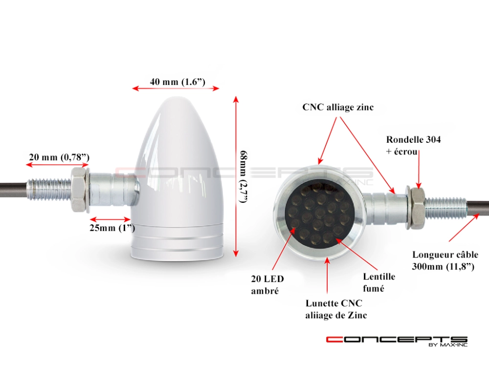 Paire de clignotants en aluminium véritable, universels, ils sont adaptables sur toutes motos.