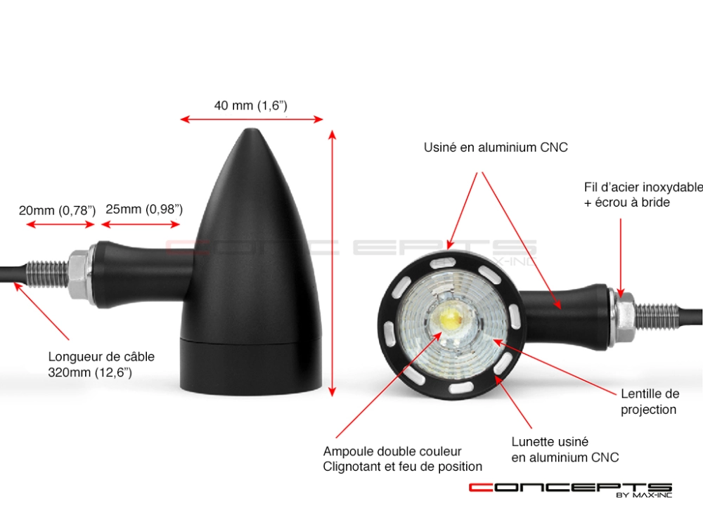 Paire de clignotants en aluminium véritable, universels, ils sont adaptables sur toutes motos.
