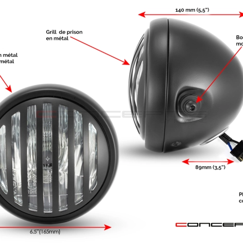 Phare avant avec cache feu "Prison bar" 16,5cm