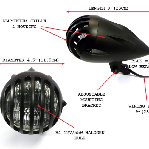 Phare avant universel Noir 'Prison Bar' 11,5cm