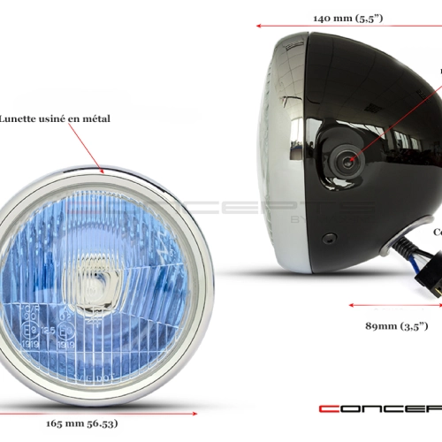 Phare avant universel classique chrome et noir
