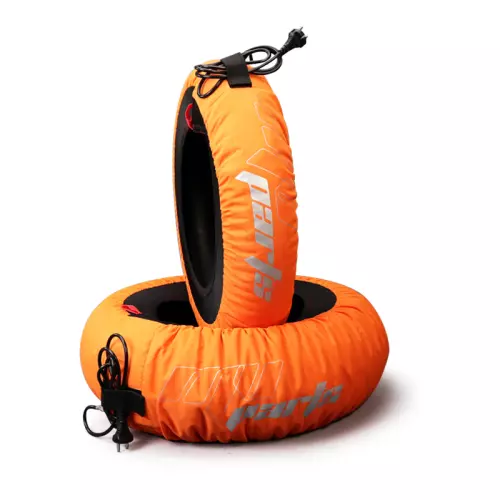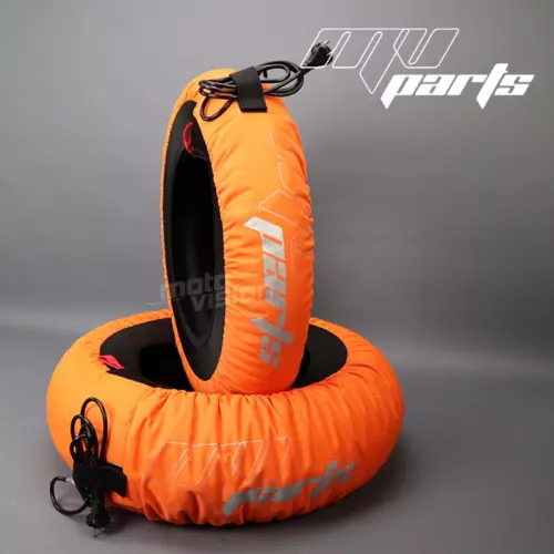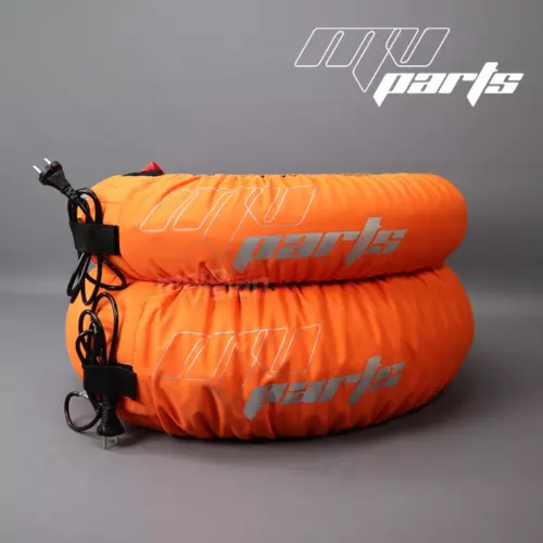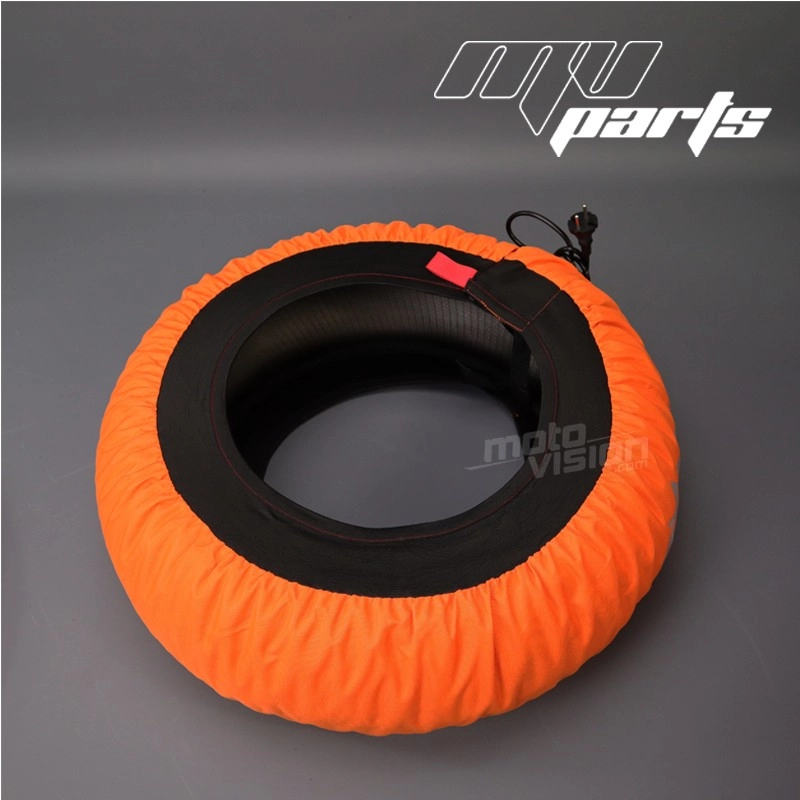 Paire de couvertures chauffantes avec thermo régulation automatique allant jusqu’à 80°C. Le montage de ce modèle MV Parts est facile et adhère parfaitement contre le pneu pour un contact optimal.