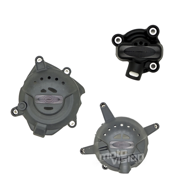 Lot de Protections moteur Moto Vision reprenant les points de fixation d'origine, livré avec les vis.