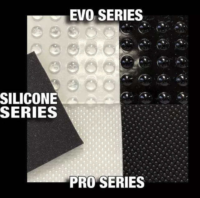Gamme EVO : Grip constitué de grands dômes hémisphériques offrant une meilleure accroche mais s'usant plus vite que la gamme PRO