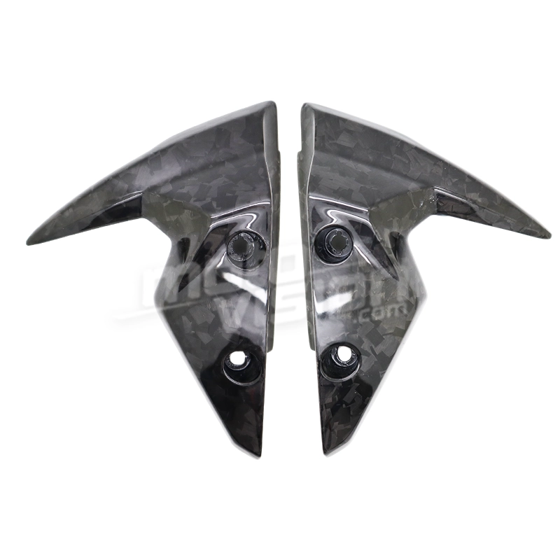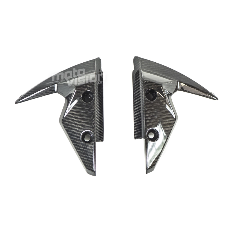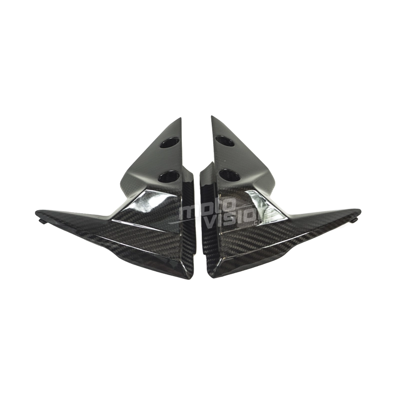 Flancs de garde-boue Carbone Triumph Street Triple 660 et 765 2017-.., livré sans visserie ou autres fixations. Les perçages sont déjà effectués sur les carénages moto en carbone.