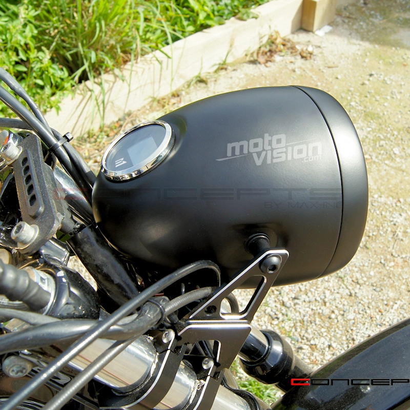 Ce phare avant allie un look vintage à un compteur de vitesse GPS numérique moderne.