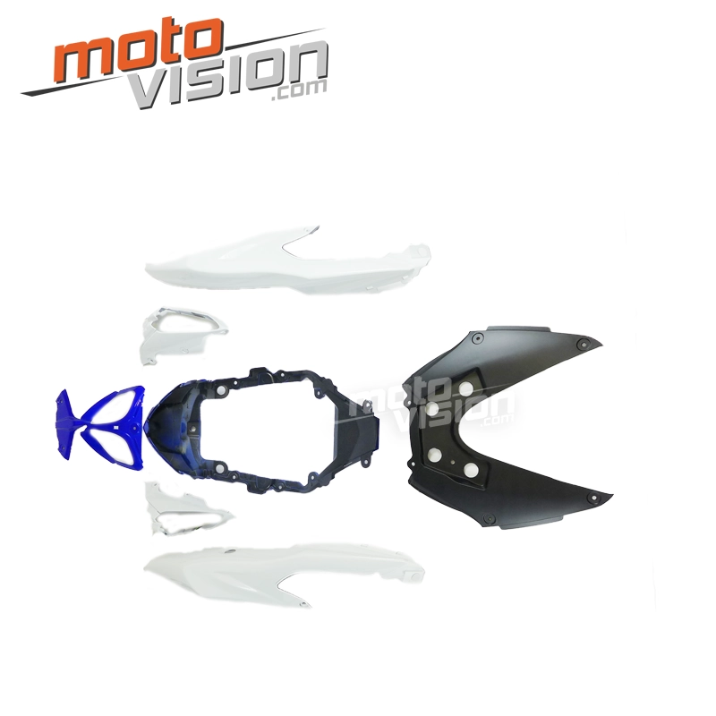 Le kit de carénage ABS est peint comme présenté sur les photos. Il est livré sans stickers, ni visserie ni bulle.