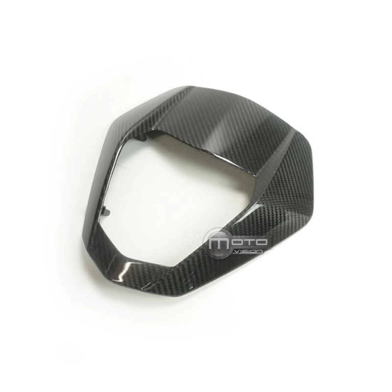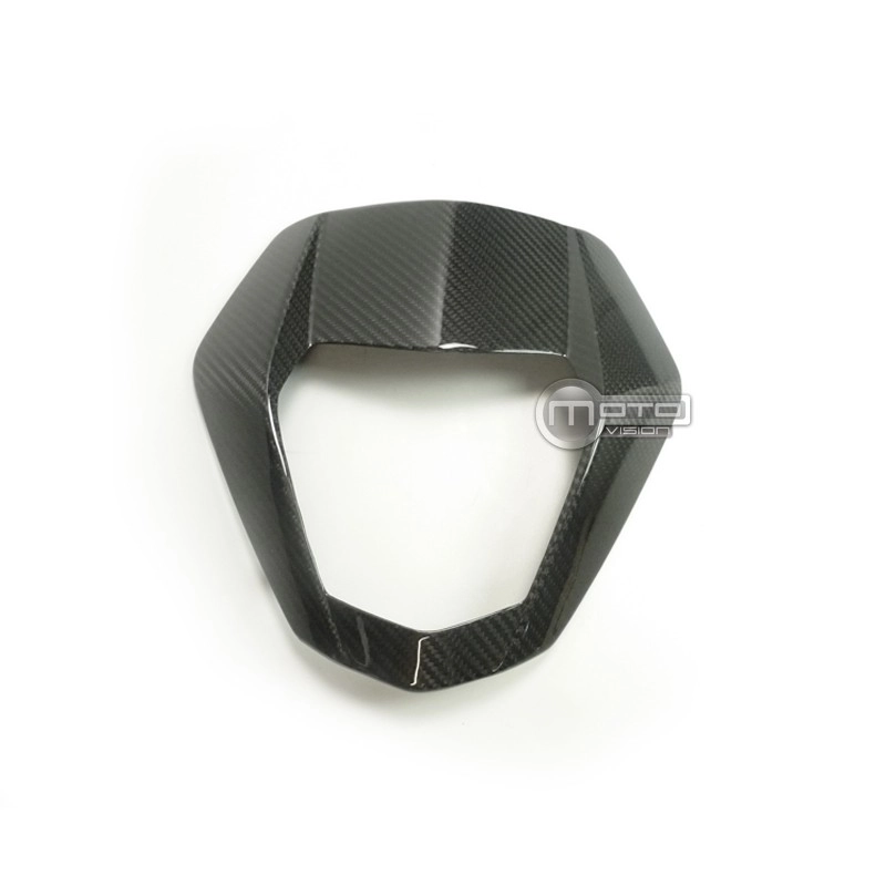 Contour de phare carbone KTM DUKE 690 2012, livré sans visserie ou autres fixations. Les perçages sont déjà effectués sur les carénages moto en carbone.