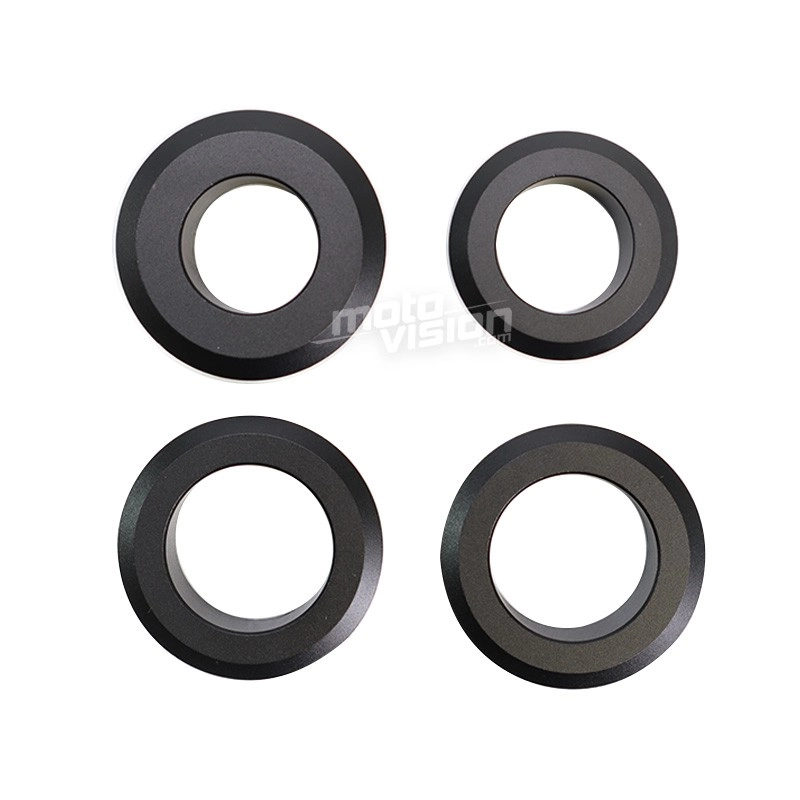 Entretoises de roue pour Kawasaki ZX10R 06-10 , fabriquées en aluminium. Esthétiques et pratiques, les pièces s'installent directement dans le joint anti-poussière de la roue.