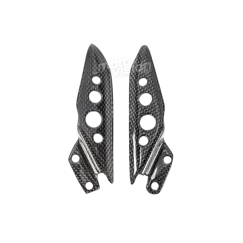 Paire de reposes pieds arrière Carbone Ducati Hypermotard Multistrada, livré sans visserie ou autres fixations. Les perçages sont déjà effectués sur les carénages moto en carbone.