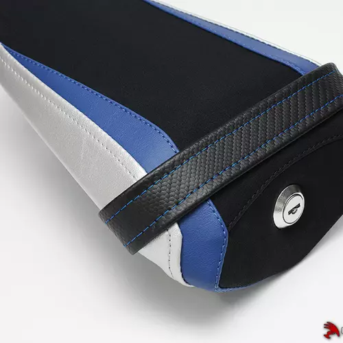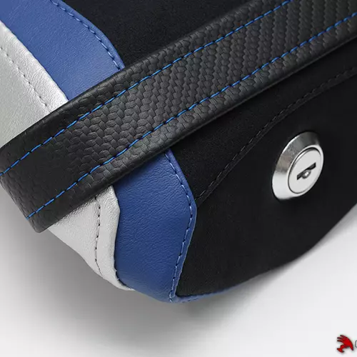 Couvre selle Yamaha R6 17-18 Coutures bleues de très grande qualité, fabriquée au Canada. La marque conçoit des produits avec une superbe finition : broderies détaillées, vinyl de type marine, tissu style carbone ou encore cuir type Suède de qualité supérieure... Le design et les couleurs sont personnalisables afin de s'accorder au mieux au look de votre moto.
