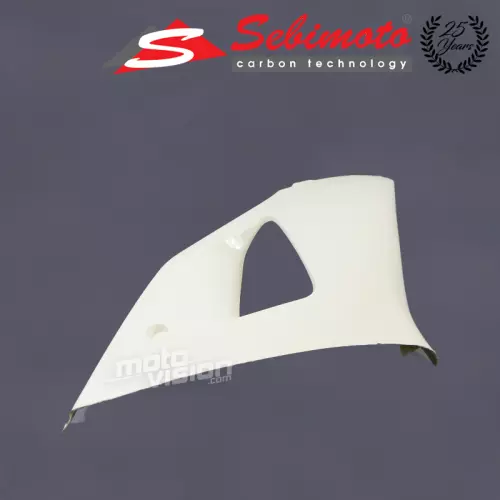 Flanc Droit poly Sebimoto Yamaha R1 1998-1999 en fibre de verre tressée avec renforts kevlar. Le produit se monte facilement sur votre moto grâce au repérage des emplacements de perçage et une bonne finition du carénage.