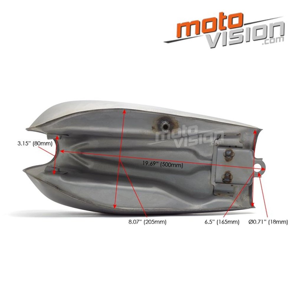 Réservoir acier brut 9L pour moto de style Cafe Racer Classique. Il redonnera un coup de jeune à votre et participera à la personnalisation de votre moto par sa forme. Le réservoir est en acier, ce qui lui donne une apparence robuste et authentique. Sa forme profilée lui confère un aspect racé et minimaliste qui contribue à l'esthétique globale de la moto.