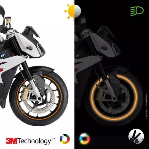 Conçues pour une pose facile sur les jantes de la moto, les bandes en amélioreront l'esthétique tout en vous apportant la visibilité latérale qui manque avec les seuls feux avant et arrière.
