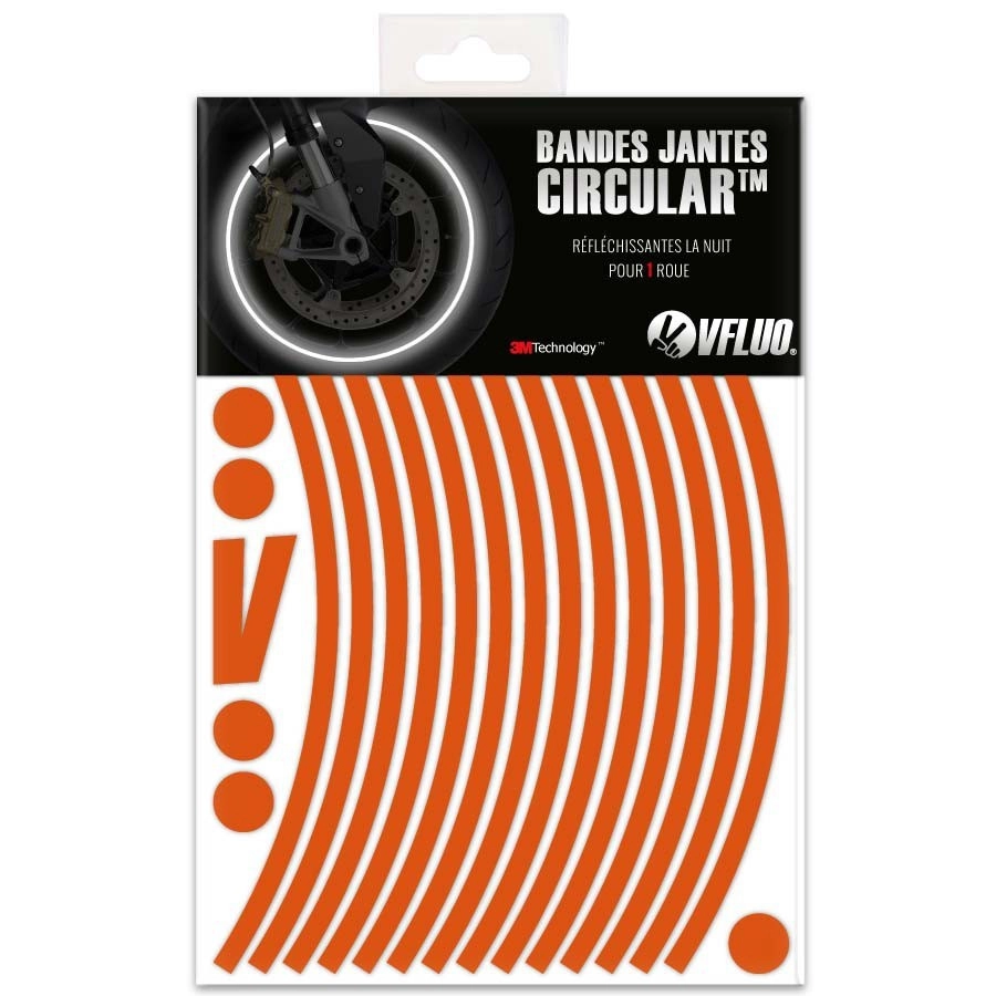 Ce kit de marque VFLUO comprend 14 bandes adhésives (pour une roue) qui intègrent la technologie 3M™. Le meilleur matériau rétro réfléchissant.