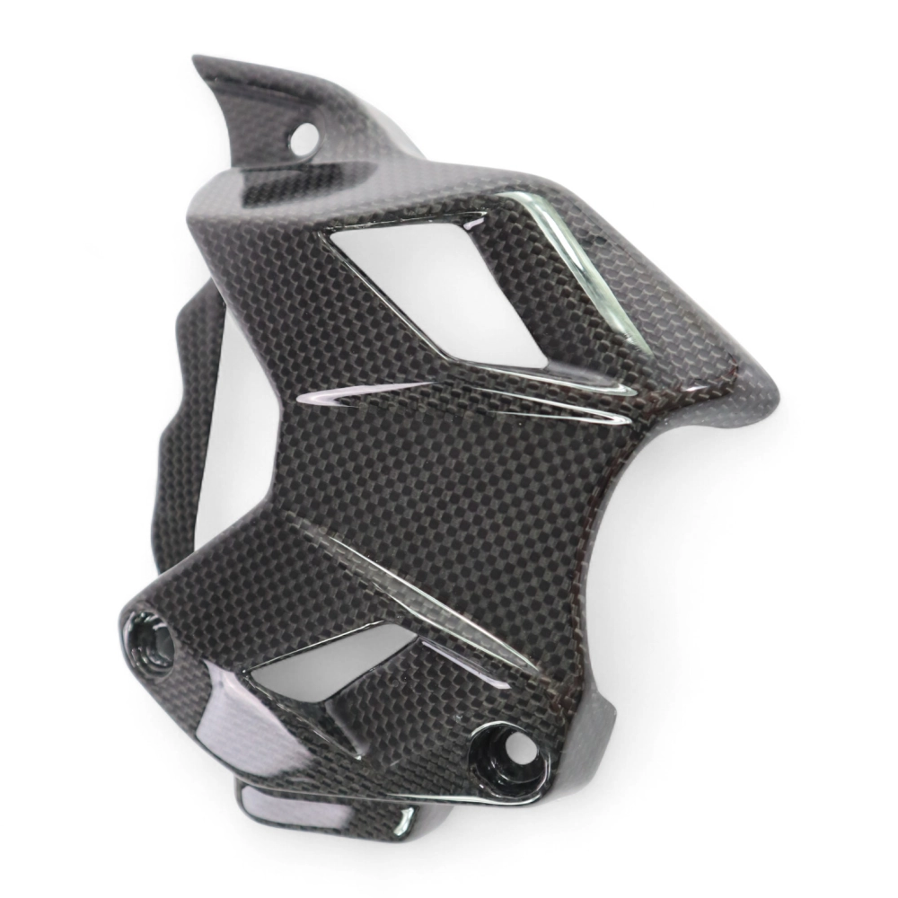 Cache pignon carbone vernis MV Agusta Brutale 800/RR/RC 2016-2019 à monter directement sur les points de fixation d'origine de votre moto en remplacement du carénage d'origine. Les pièces en carbone sont livrées sans visserie.