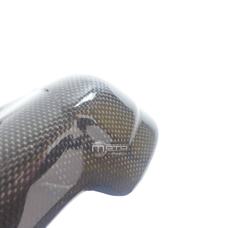 Protection moto avec une couche extérieure en véritable carbone sergé gloss (uniquement disponible dans cette finition). Livrée sans visserie ou autres fixations.