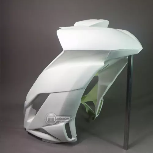 Carénage avant Kawasaki ZX6 2009-2012 version apprêtée, ce qui le rend plus léger et offre une meilleure finition de votre carénage piste. Il vous permet également d’économiser une étape de préparation avant la peinture.