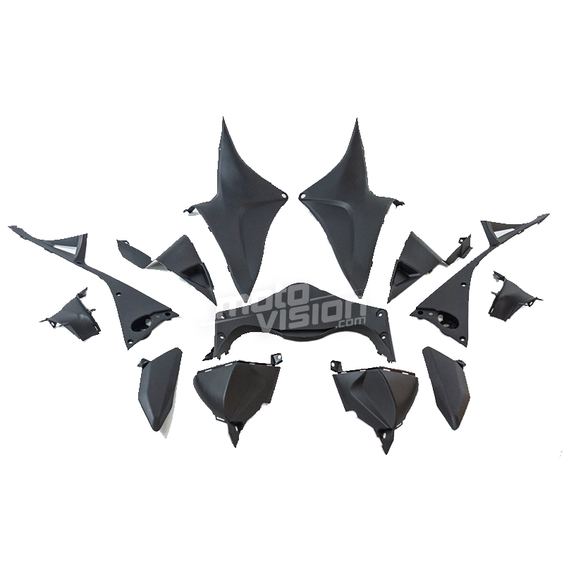 Le kit de carénage ABS est peint comme présenté sur les photos. Il est livré sans stickers, ni visserie ni bulle.