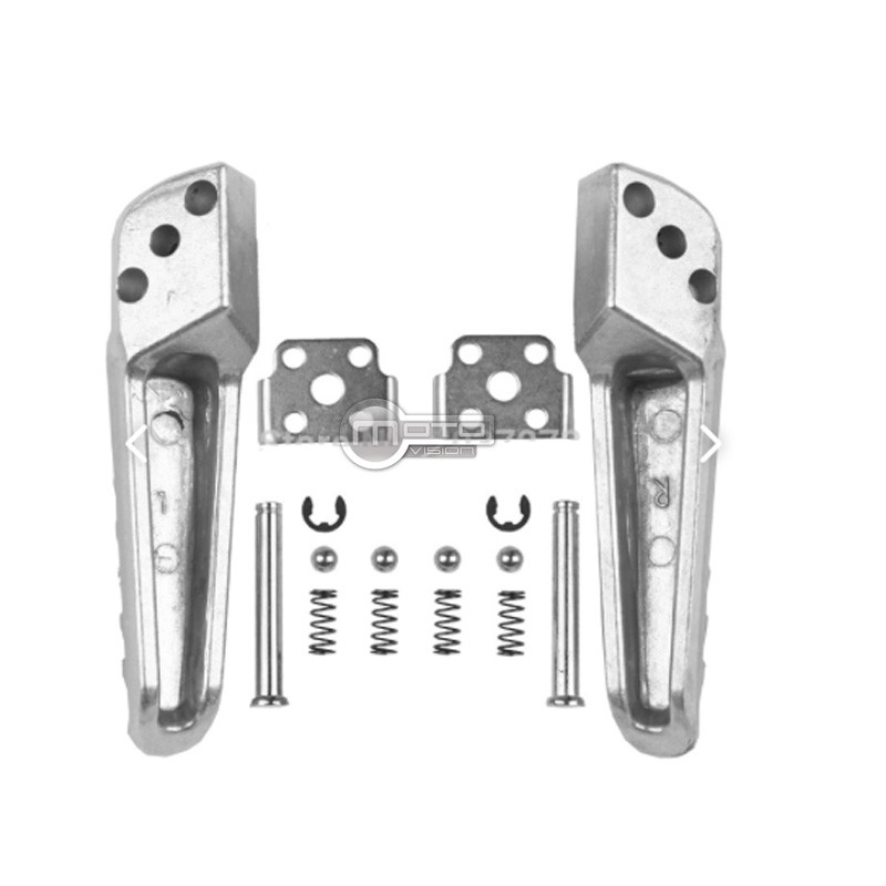 Les cales pieds sont prévus pour l'arriere (passager) et sont vendus par paire. Le kit comprends les reposes pieds en aluminium et les adaptateurs spécifiques au modèle de moto.