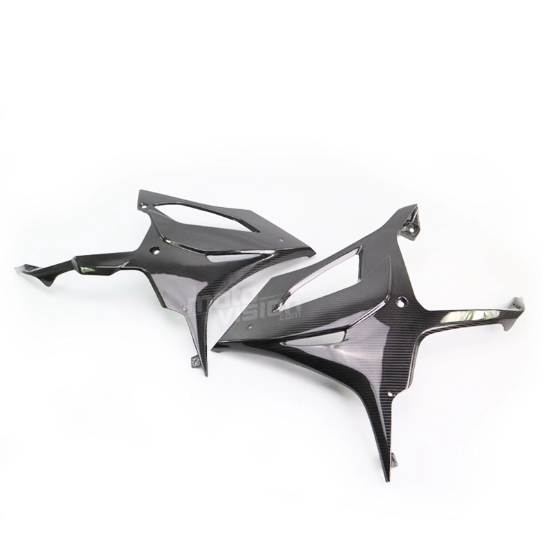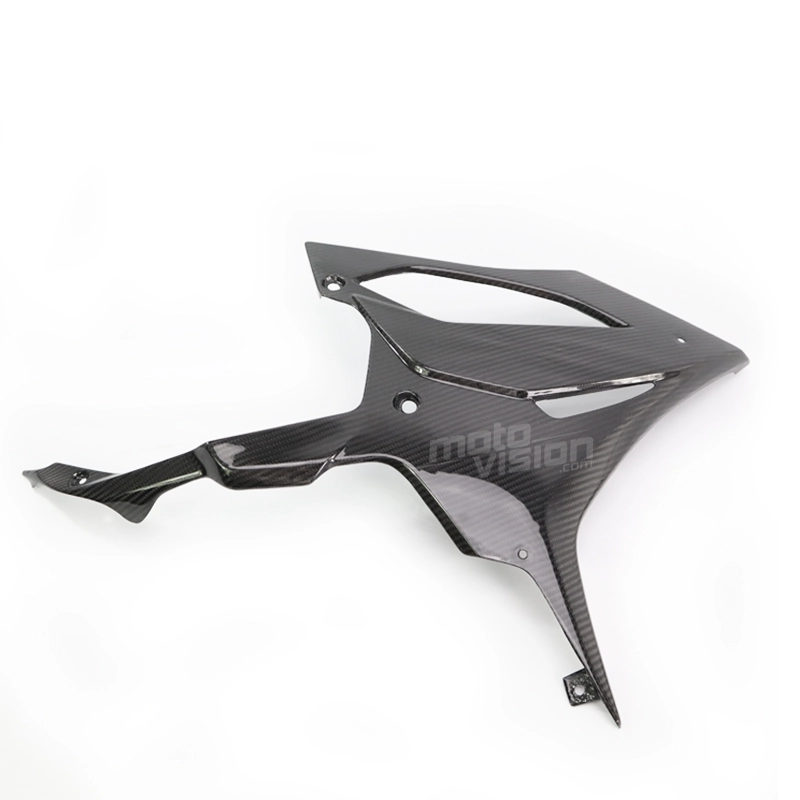 Sabot en deux parties carbone vernis pour BMW S1000RR 2019-2021, livré sans visserie ou autres fixations. Les perçages sont déjà effectués sur les carénages moto en carbone.