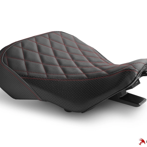 Couvre selle Honda CB300 R 2018-2019 de très grande qualité, fabriquée au Canada. La marque conçoit des produits avec une superbe finition : broderies détaillées, vinyl de type marine, tissu style carbone ou encore cuir type Suède de qualité supérieure... Le design et les couleurs sont personnalisables afin de s'accorder au mieux au look de votre moto.