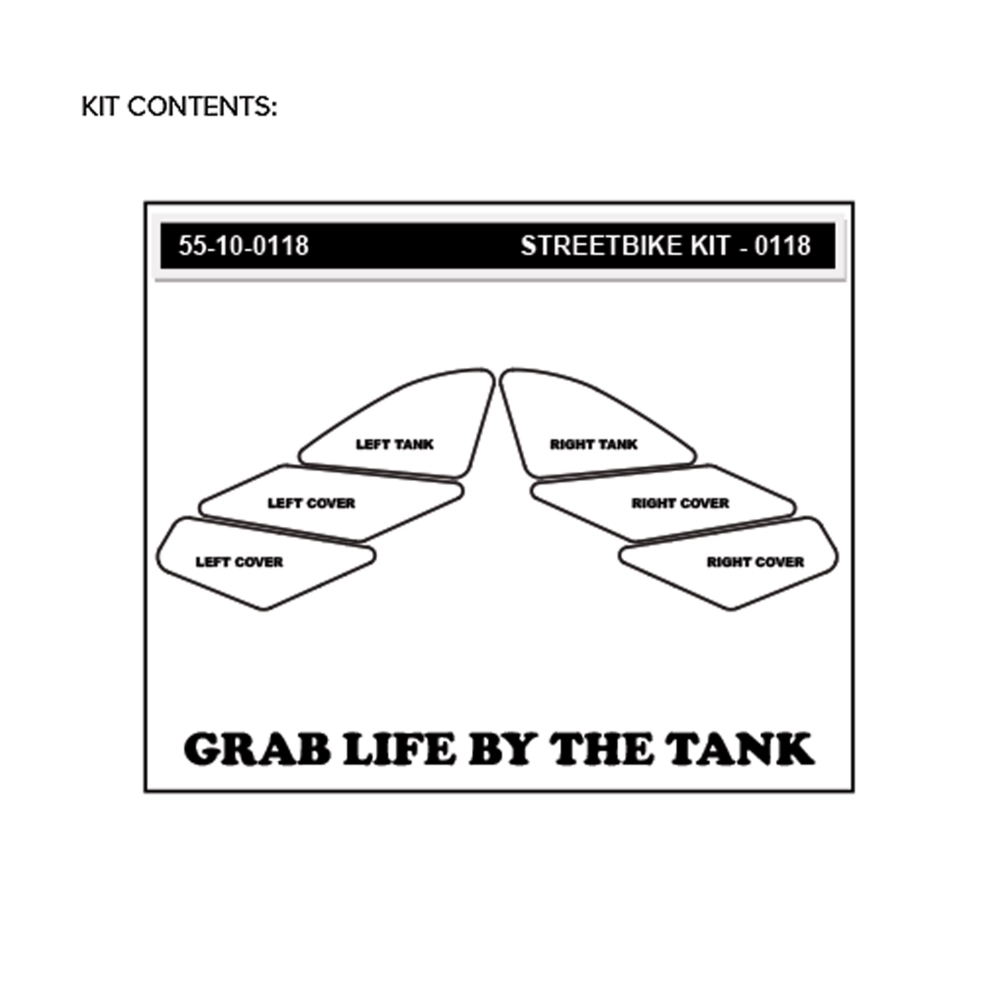 Les grips de réservoir Stompgrip sont livrés pré-découpés et spécifiques à chaque modèle de moto.