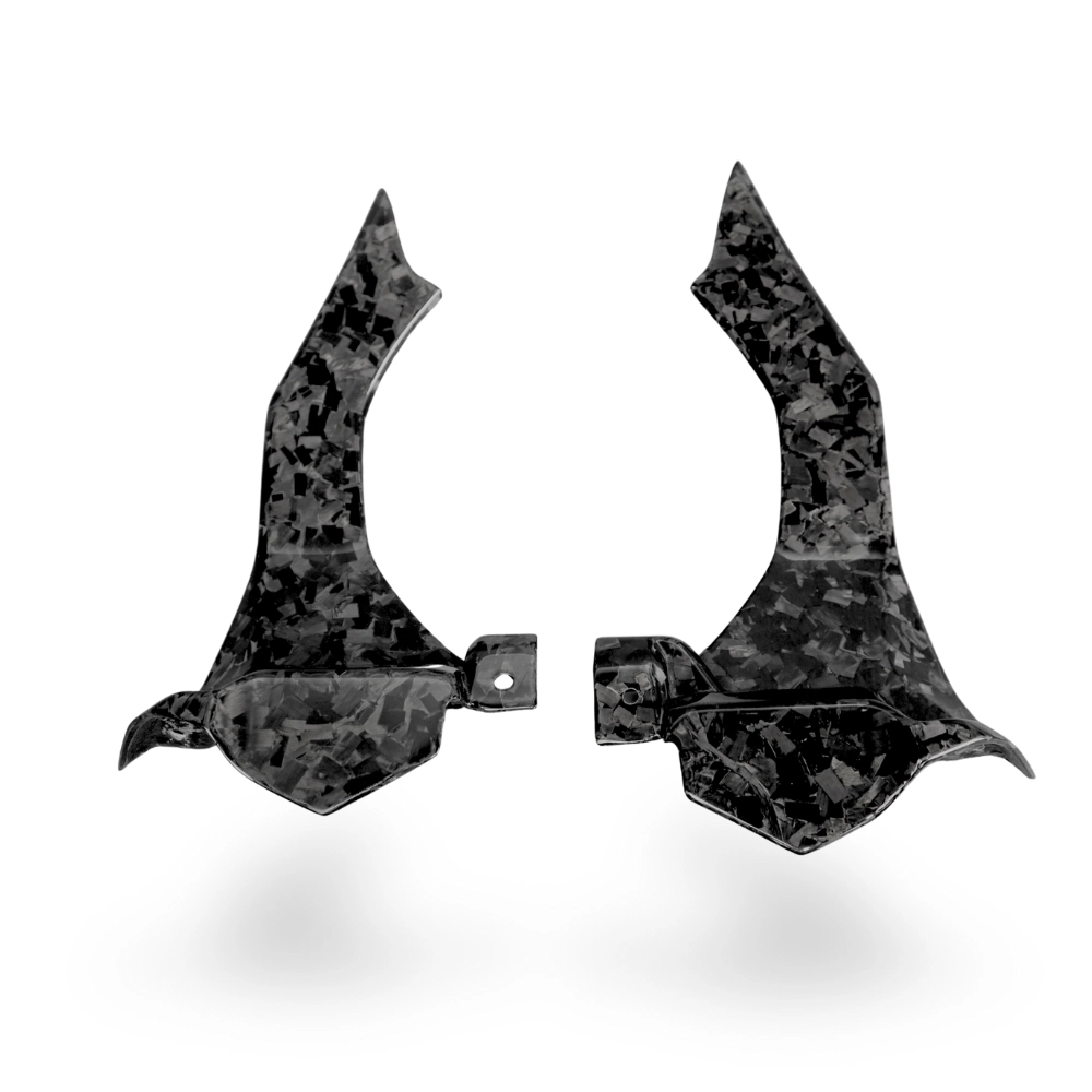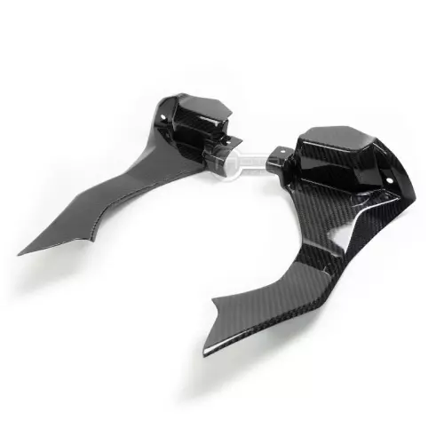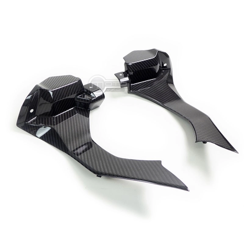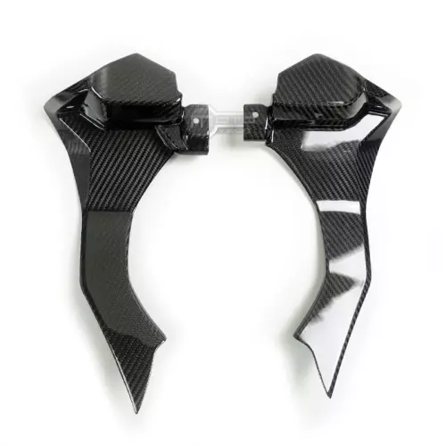 Caches sur canaux d'airs (sauf version M) Carbone Yamaha R1 2015-..., livré sans visserie ou autres fixations. Les perçages sont déjà effectués sur les carénages moto en carbone.