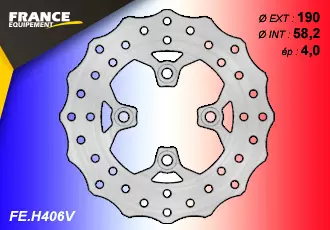 Disque de frein vague Gamme Essentiel FE.H406V de diamètre extérieur : 190 mm, diamètre intérieur : 58,2 mm, épaisseur : 4,0 mm en remplacement de votre disque moto d'origine.