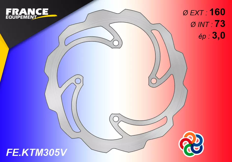 Disque de frein vague Gamme Essentiel FE.KTM305V de diamètre extérieur : 160 mm, diamètre intérieur : 73 mm, épaisseur : 3,0 mm en remplacement de votre disque moto d'origine.