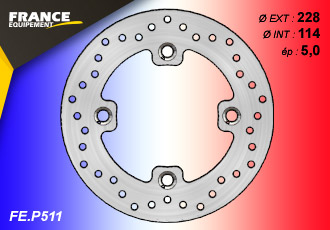 Disque de frein Gamme Essentiel FE.P511 de diamètre extérieur : 228 mm, diamètre intérieur : 114 mm, épaisseur : 5,0 mm en remplacement de votre disque moto d'origine.