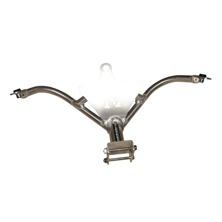 Araignée racing piste aluminium Motoholders MV Agusta F4 apr?s 2009 spécialement étudiée pour obtenir un maximum de rigidité pour un gain de poids. Ce support de carénage est adapté uniquement à une utilisation piste, avec suppression des fixations de phare et rétroviseurs.