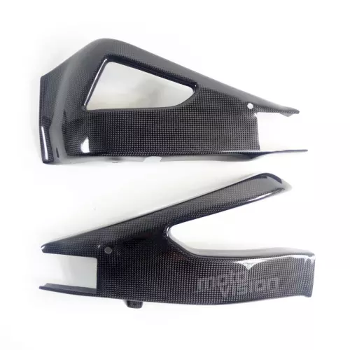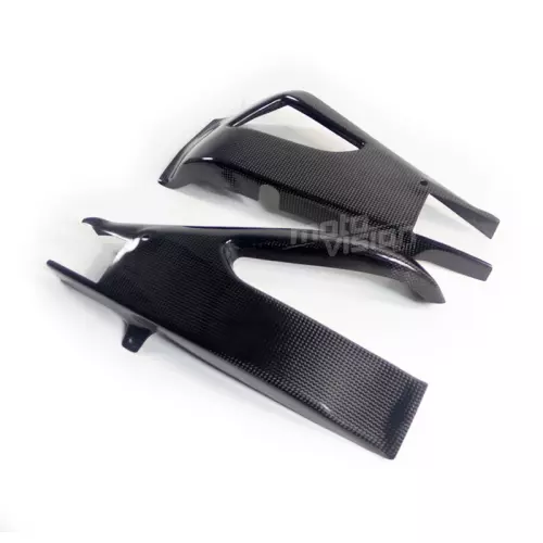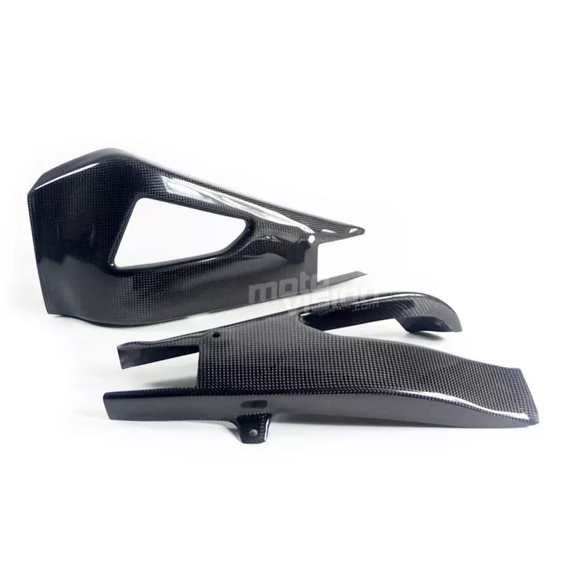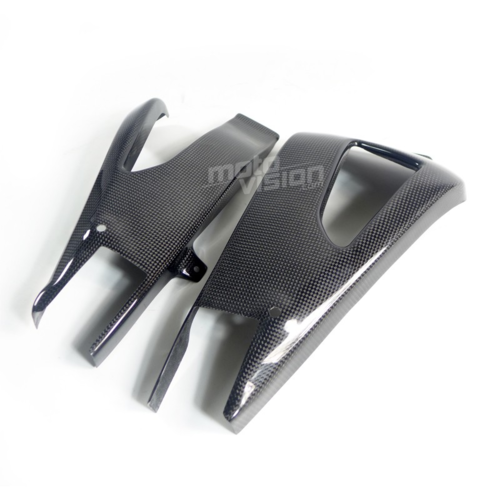 Les protections de cadre et de bras oscillant en carbone véritable offrent à votre moto une protection anti gravillons en cas de chute.