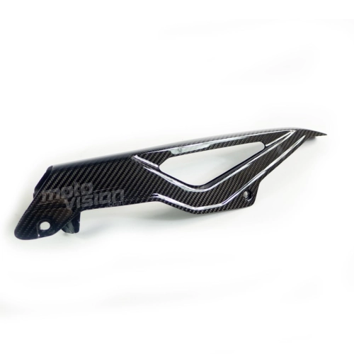 Guide chaine carbone vernis pour Honda NC750S NC750X 2017-2019, livré sans visserie ou autres fixations. Les perçages sont déjà effectués sur les carénages moto en carbone.