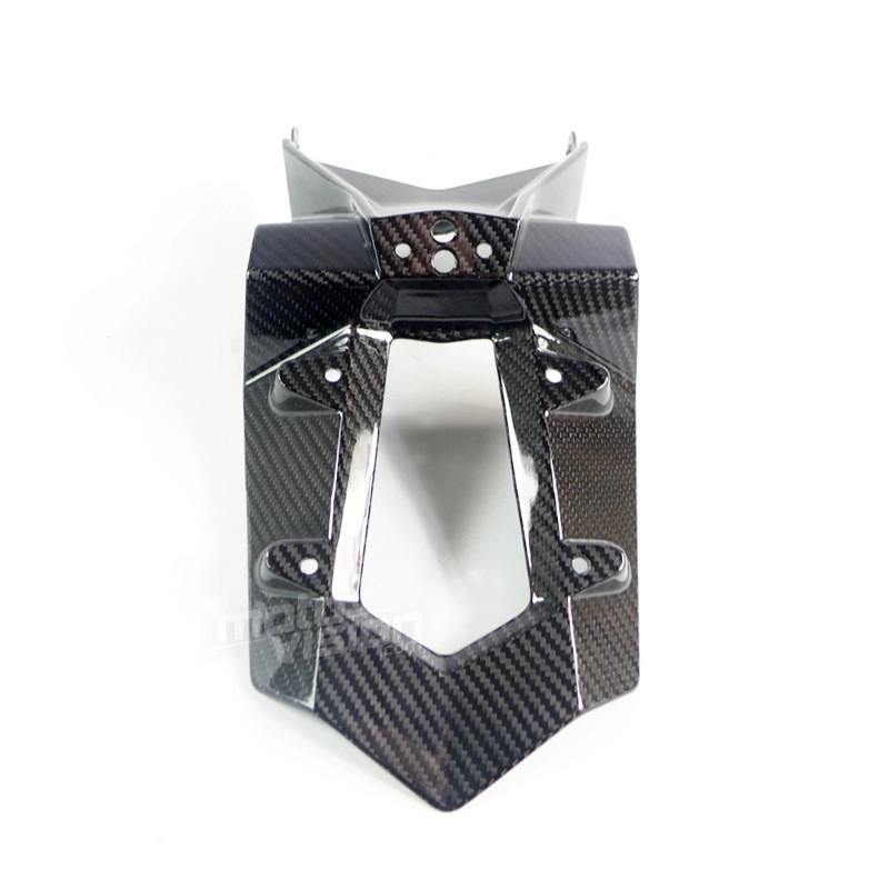 Support de plaque carbone vernis pour KTM 1290 Super Adventure 2015, livré sans visserie ou autres fixations. Les perçages sont déjà effectués sur les carénages moto en carbone.