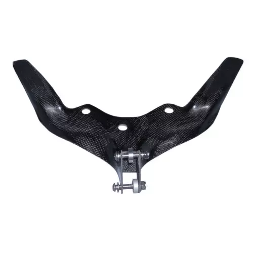 Araignée racing en carbone Motoholders Yamaha R1 2004-2006 spécialement étudiée pour obtenir un maximum de rigidité pour un gain de poids. Ce support de carénage est adapté uniquement à une utilisation piste, avec suppression des fixations de phare et rétroviseurs.
