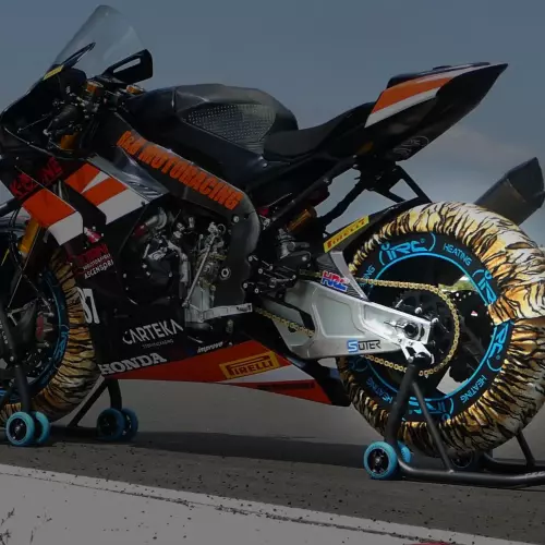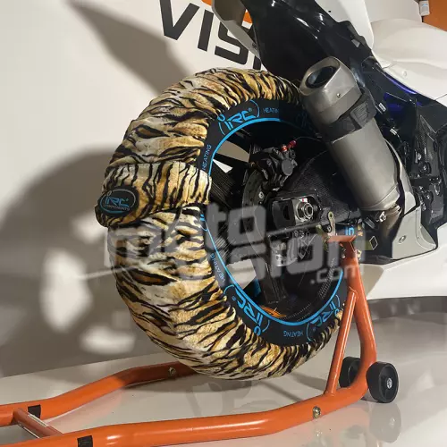 Paire de couvertures chauffantes IRC avec le motif "Animal Tiger" autorégulées à 80°C et disponible en taille XL et XXL. Cette couverture chauffante moto homologuée CE est spécialement conçue pour vous démarquer lors des sessions de roulages moto, aussi bien dans le paddock que sur la piste.