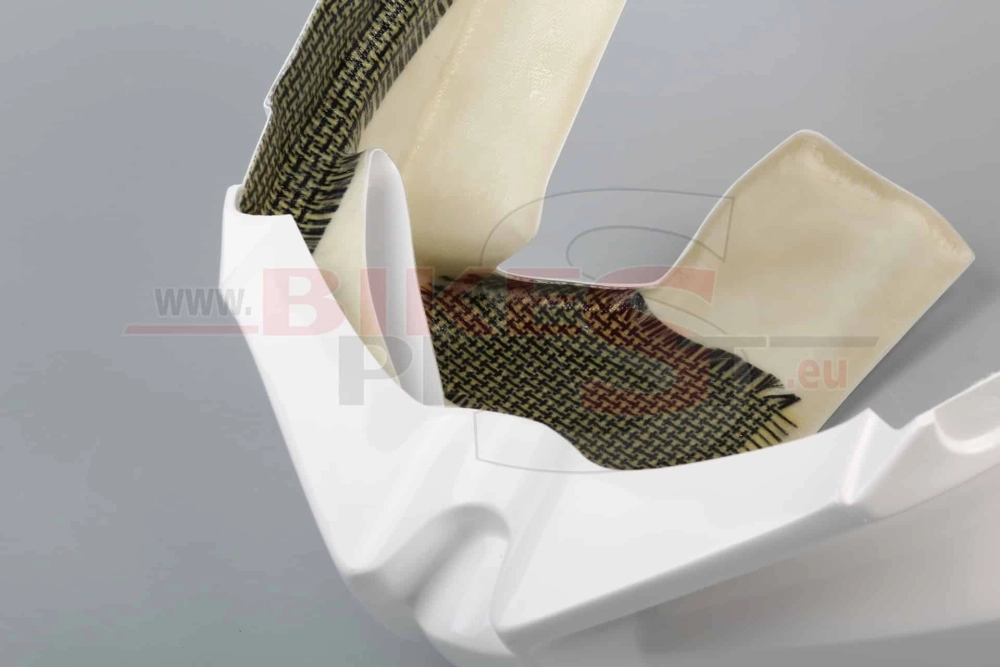 Carénage avant poly Bikesplast Aprilia RSV 4 1000 2015-2020 avec renforts kevlar XXL et empreintes pour perçages.