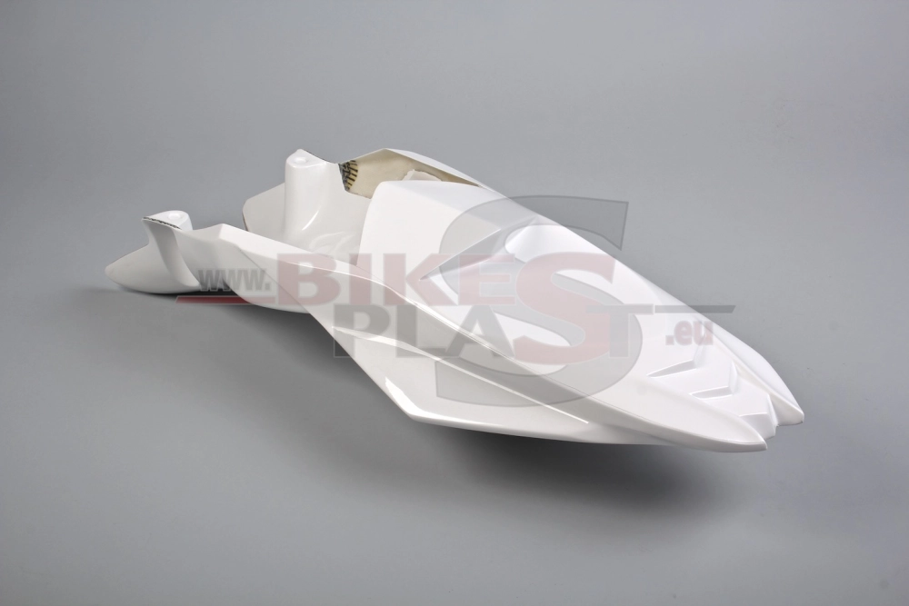 Coque de selle monoposoto poly Bikesplast BMW S1000RR 2015-2018 avec renforts kevlar XXL, repérage des emplacements de perçages, supports alu si nécessaire.