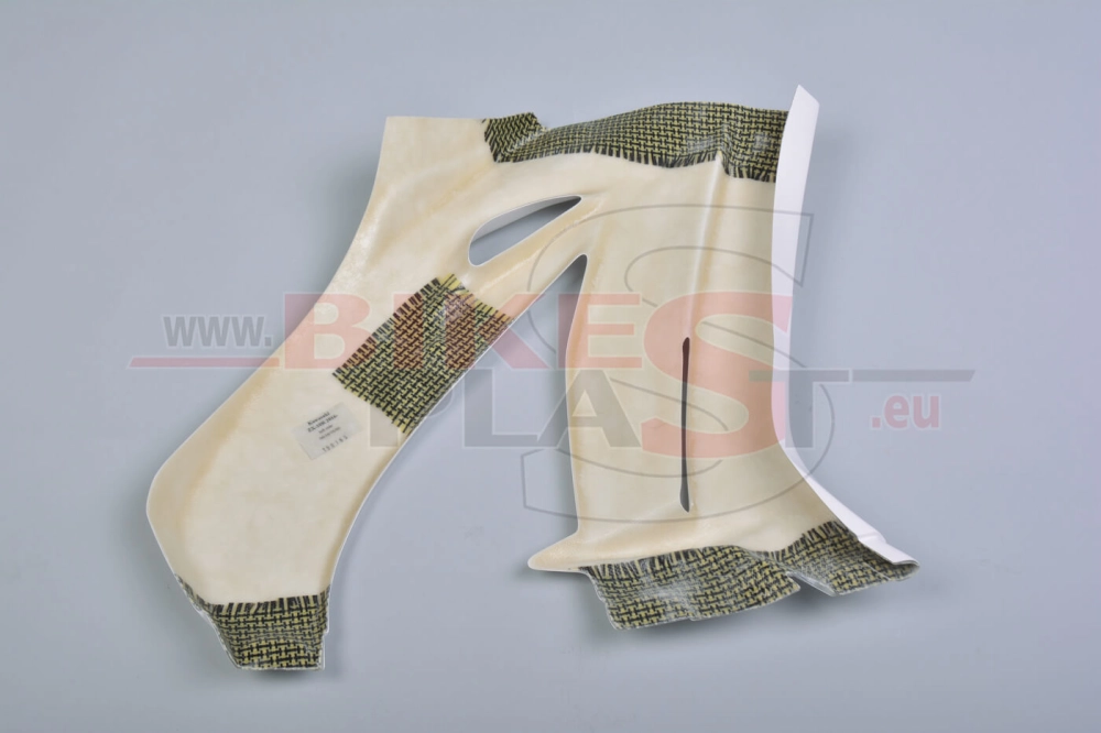 Flanc gauche poly Bikesplast Kawasaki ZX10R 2016-2020 avec renforts kevlar XXL, repérage des emplacements de perçages.