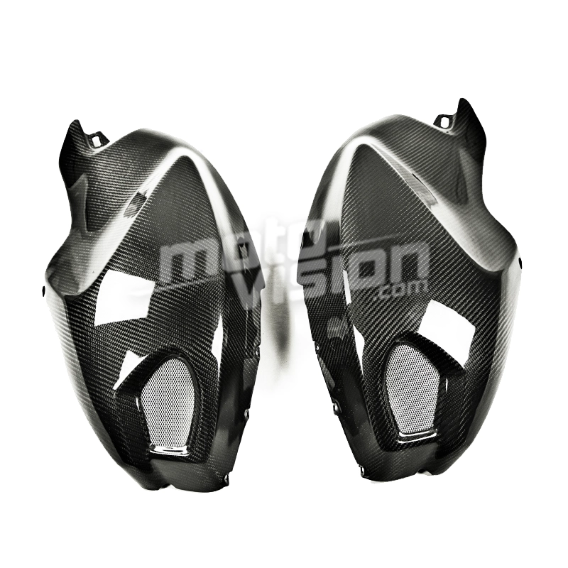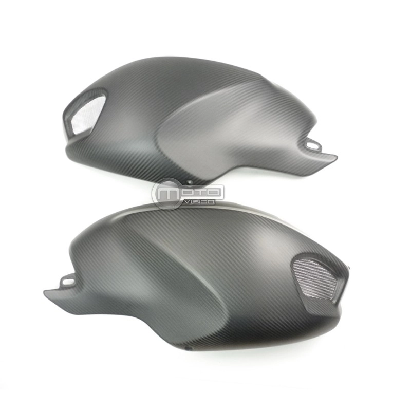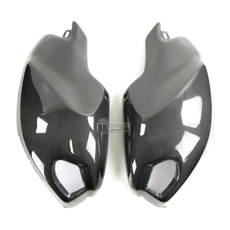 Paire de Cache de réservoir Carbone Ducati Monster 696 796 1100 1100S, livré sans visserie ou autres fixations. Les perçages sont déjà effectués sur les carénages moto en carbone.