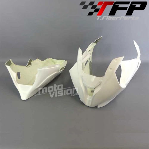 Le Carénage avant + entrée d'air BMW S1000RR 2019-2022 est plus léger que le carénage d'origine et adapté aux normes d'un circuit. Il se compose de la tête de fourche, les flancs et le sabot - en deux ou quatres parties (voir photo).